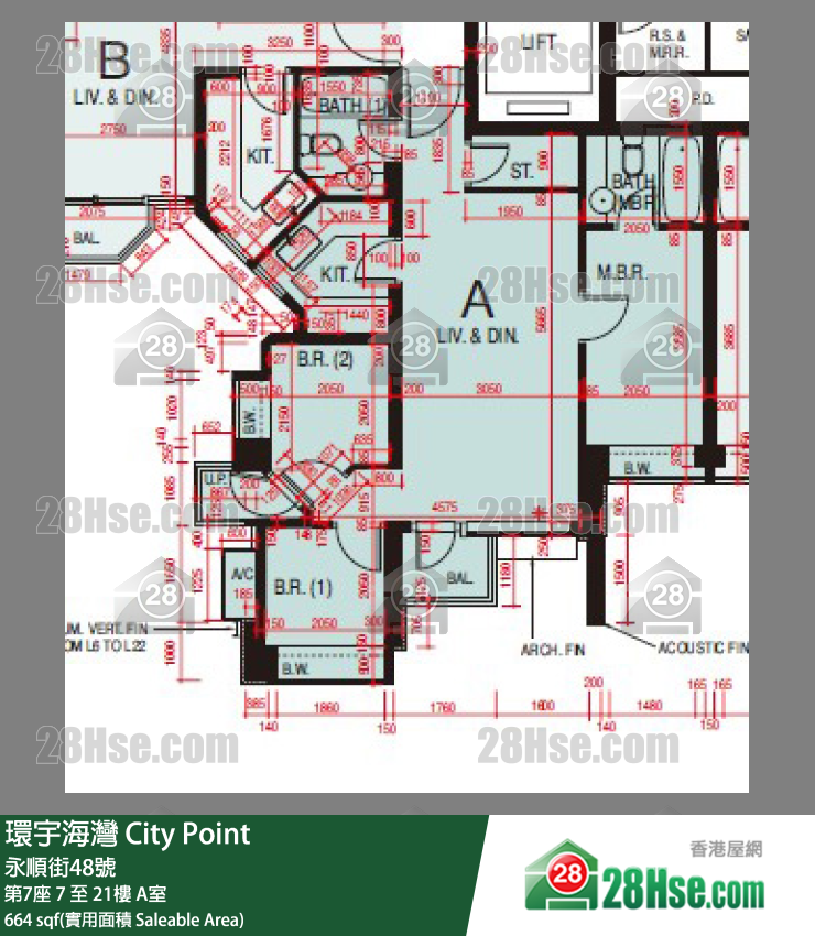 664 平方呎
