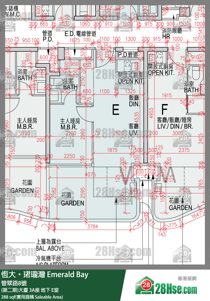 288 平方呎