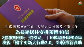 财政预算案2026|为大埔火灾长远居住安排预留40亿|3亿推加强版「招标妥」|检视「楼宇更新大行动2.0」预留30亿推新资助|拨10亿续升降机资助
