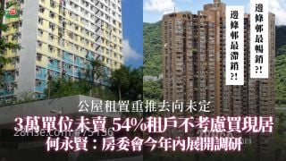 公屋租置重推去向未定 何永贤:房委会今年内展开调研|3万单位未卖|54%租户不考虑买现居|太平邨最畅销 山景邨最滞销