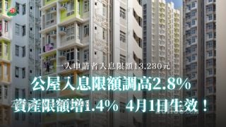 公屋入息限额调高2.8% 资产限额增1.4% 4月1日生效!