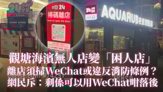 有网民则从消防角度,质疑离店安排除了构成严重安全隐患:「咁如果入边火烛嘅话,消防员系咪要扫code先入到?扫唔到嘅话系咪要爆门?」,或已违反消防条例:「唔会违反香港嘅走火条例?」、「过到消防条例咩?」