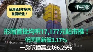 【一手速报】形瑨首批均尺17,177元贴市推! 低同区新盘3.17%|一房尺价高立坊6.25%