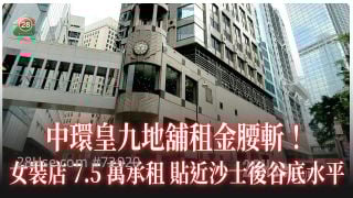 中环皇九地铺租金腰斩!女装店7.5万承租 贴近沙士后谷底水平!