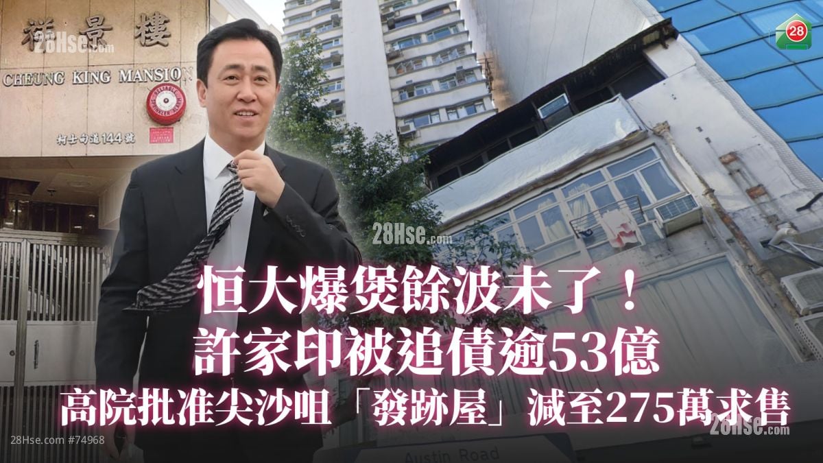和信恒聚后来入禀,要求许家印交吉其位于尖沙咀柯士甸道祥景楼的一个单位,并在法庭指示下出售该物业,以偿还部分债项。案件昨日(10日)在高等法院再讯,和信恒聚申请把物业售价下调至275万元,并获法官欧阳桂如批准。
