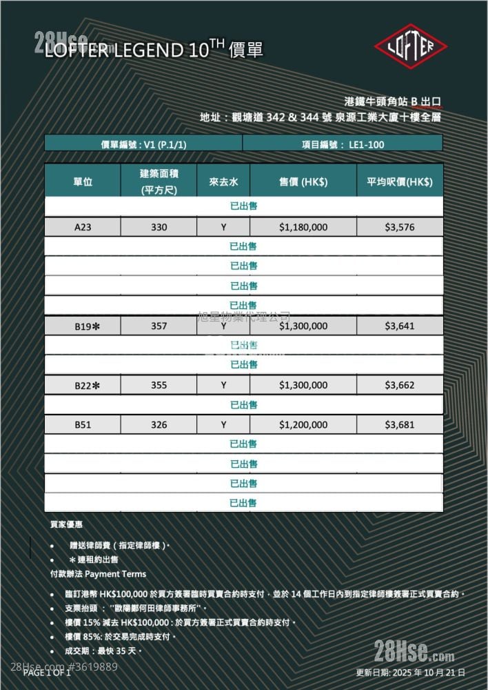Sell HKD$1.35 Millions
