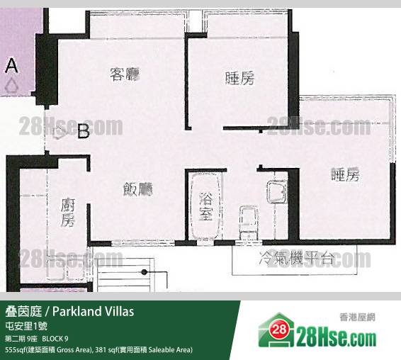 Parkland Villas, Flat B, 4/F, Block 9