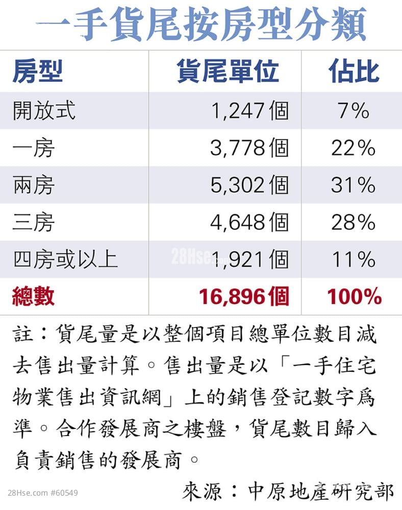 Two-bedroom flats account for over 30% of unsold flats