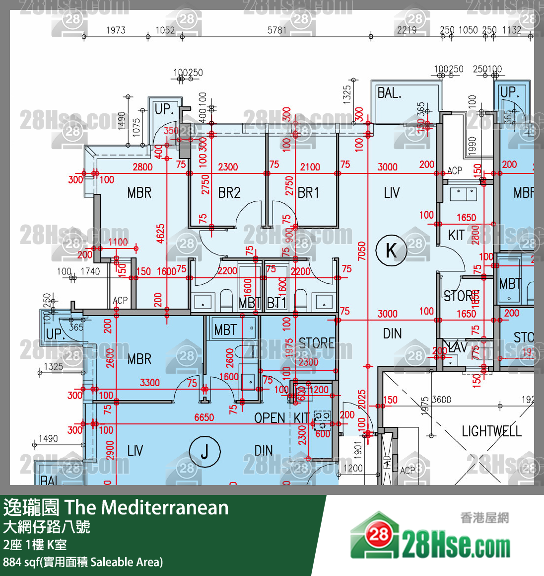 884 ft²