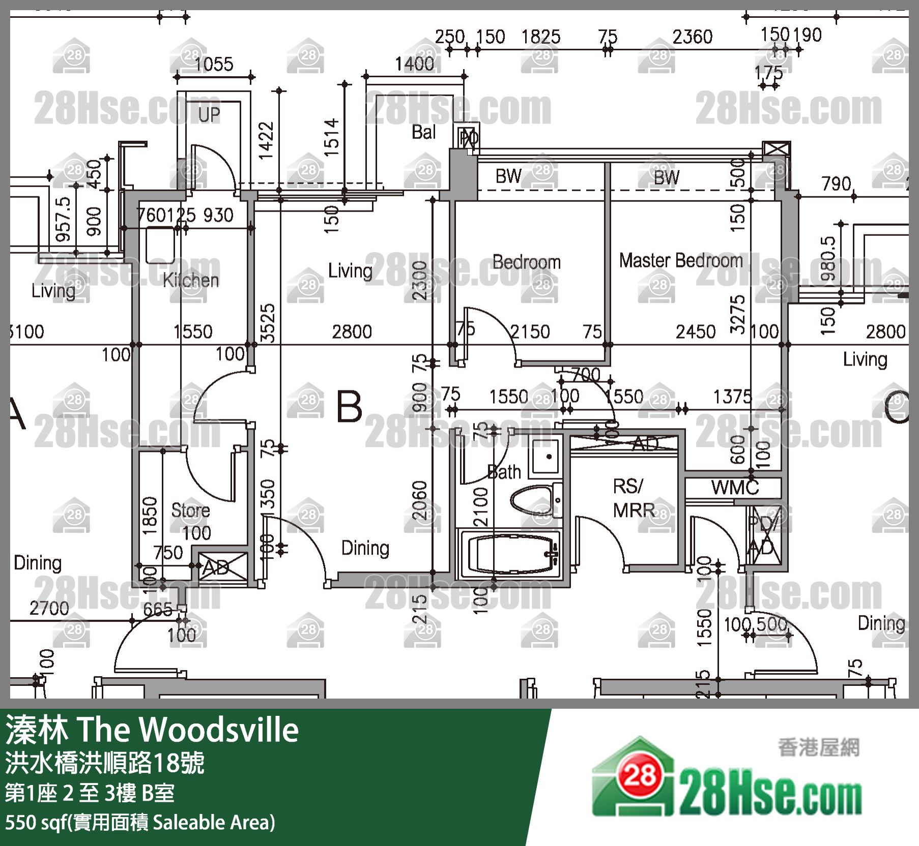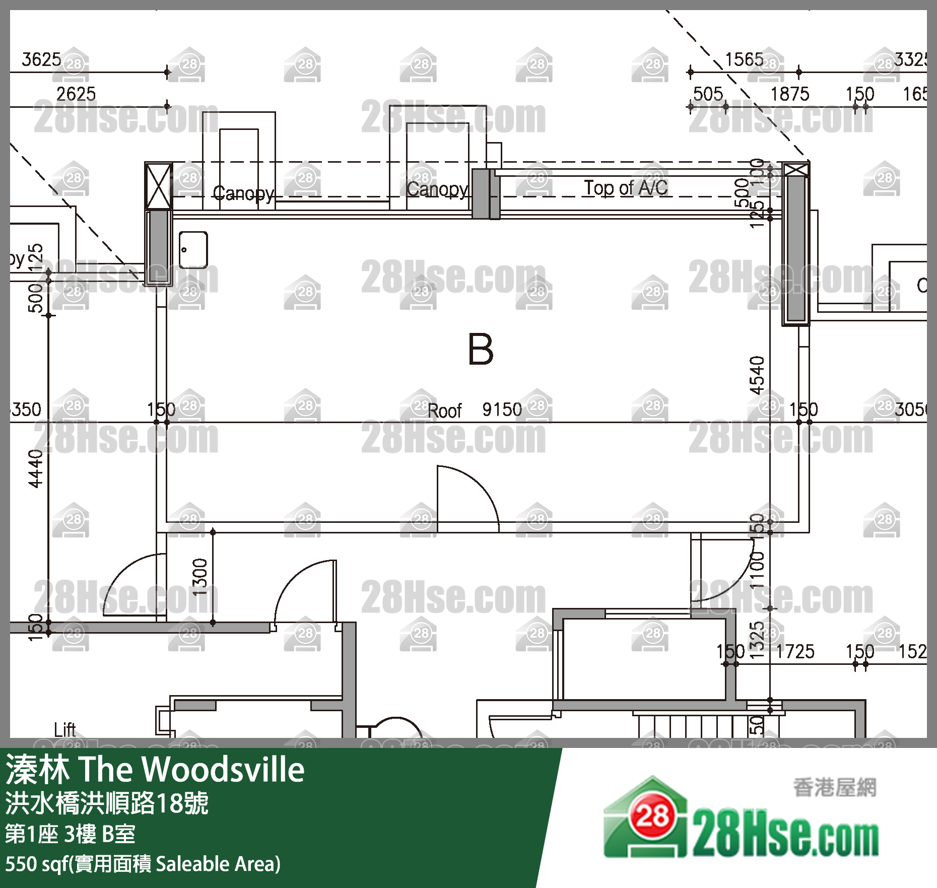 550 ft²