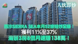 西沙SIERRA SEA本月52宗短炒全賺!獲利11%至37% 海景3房8個月速賺138萬!