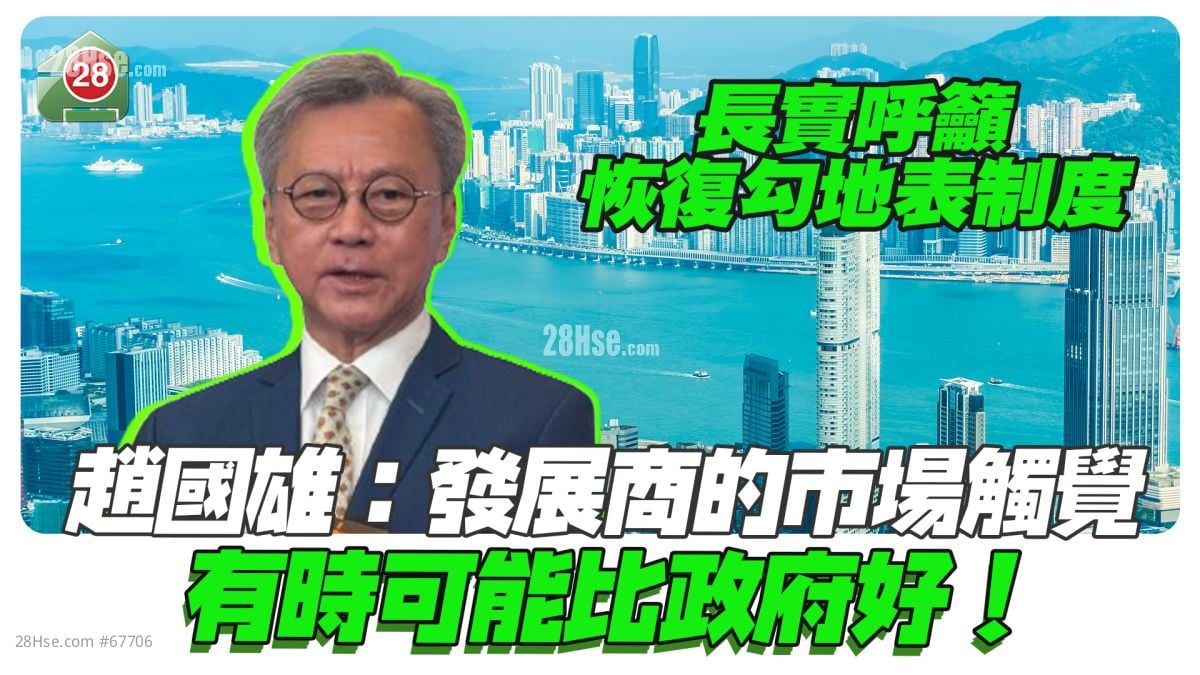 長實近期持續呼籲政府恢復勾地表制度,集團執行董事趙國雄今日在電台節目中指出,發展商對市場的觸覺有時可能比政府好,若能推行勾地表與賣地表雙軌並行,發展商可根據土地潛力主動提出釋放地皮,讓賣地制度更具彈性。他同時表示,現時樓價已見底,但市場供應充足,預計今年樓價將以窄幅上落為主。