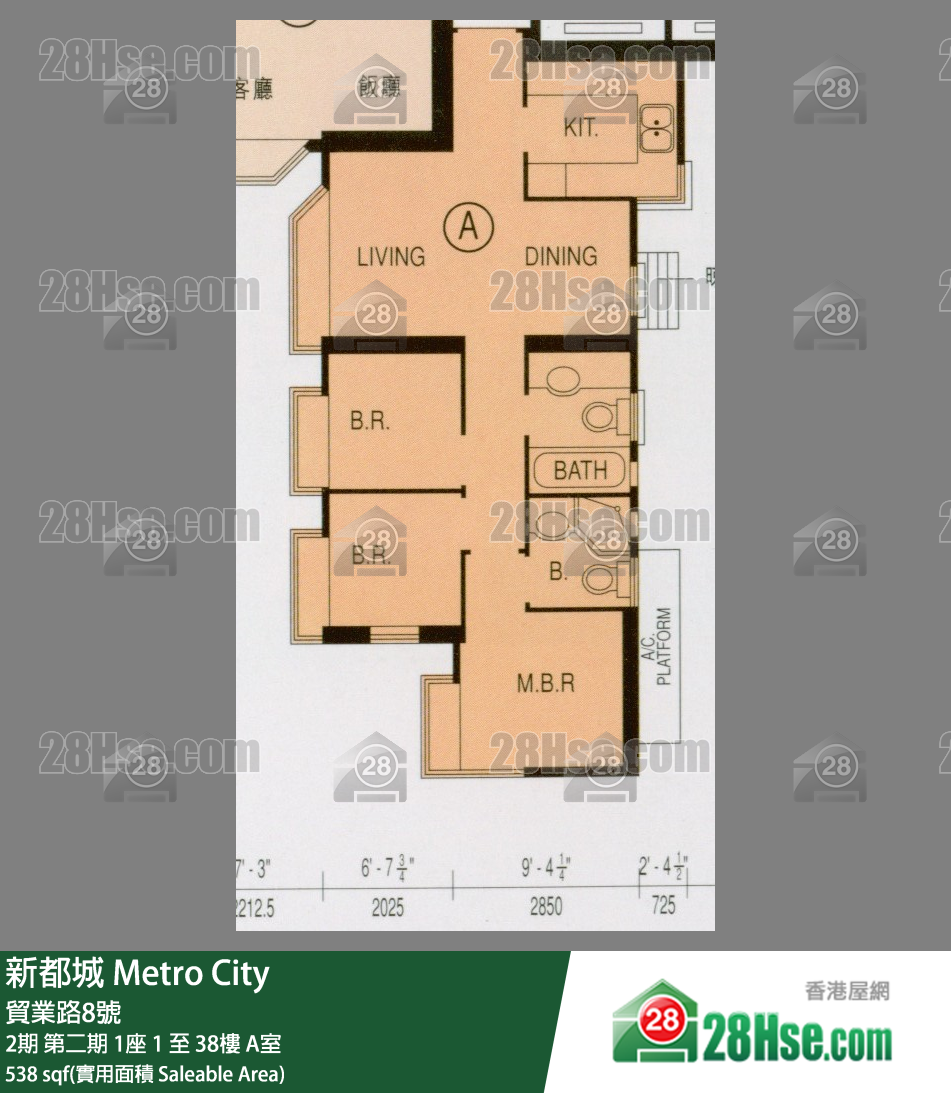 538 平方呎