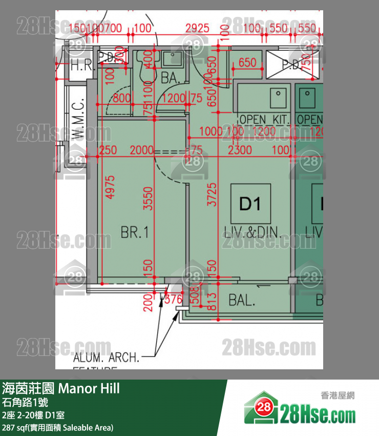 287 平方呎